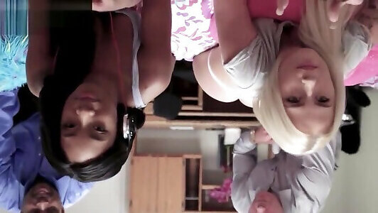 Horny Arcade Femmes Share Giant Rigid Large Joystick
