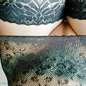 Sexy MILF in her red lingerie keep her nylon on and get penetrated