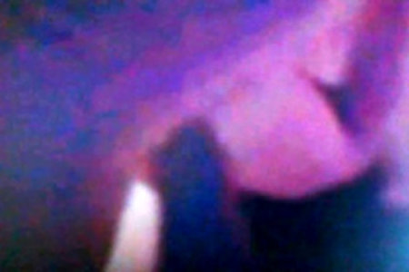 Giant dark-haired ultra-cutie in glasses teenliks moomcom drains her puss with purple fake penis