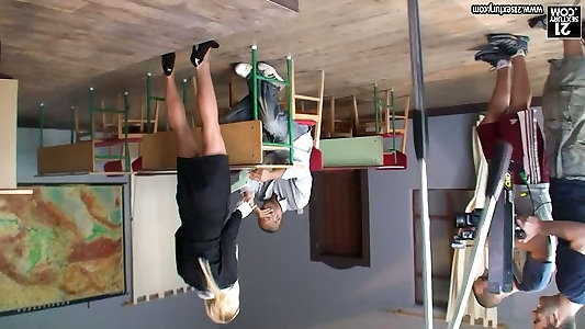 Kerry Louise plays a teacher and pulverizes her students right in a lecture apartment