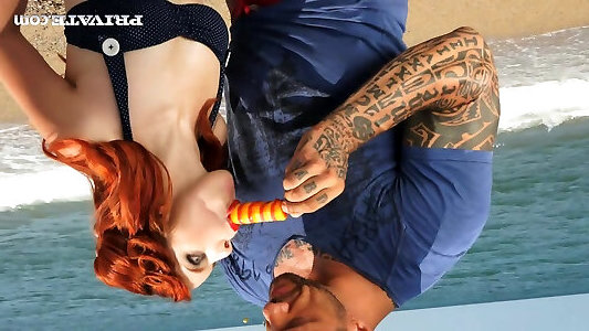Red-haired Nymph With Shaved Beaver Licking Strenuous Balls
