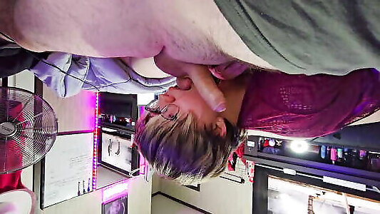 Deep blowjob from skinny teen in nice lingerie!