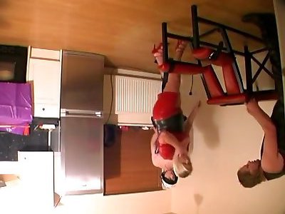 Beautiful red-hot Cougar frog-tied and teased by sir