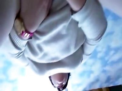 Hot German real amateur is fucked in a pearl thong, rubs her big wet old china doll girl cunt with long labia on the hard cock