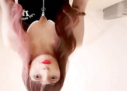 Bondage & Discipline club. Sizzling super-sexy ball ball-gagged towheaded in restraints gets fucked rock hard by insane japanese and white old lesbian in the lab