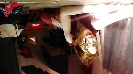 Blonde MILF collects husbands cum in a glass