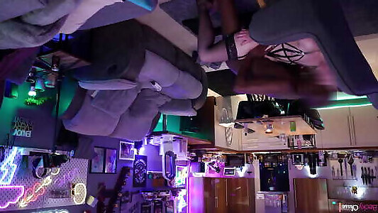 Youthful black couple strips and fucks on a sofa