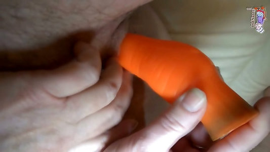 Using orange fuck stick sloppy-minded oldie Helene porks her mature pussy