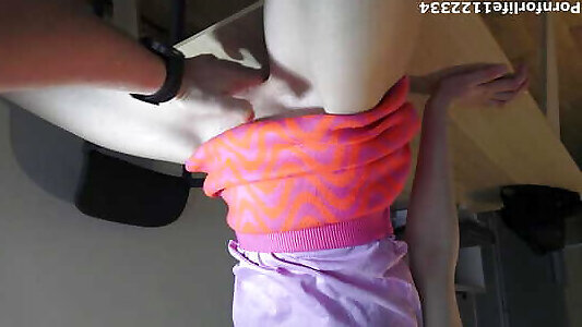 Perverted Teenager in a Mini Skirt Fucks Her Pussy with a Dildo on the Windowsill