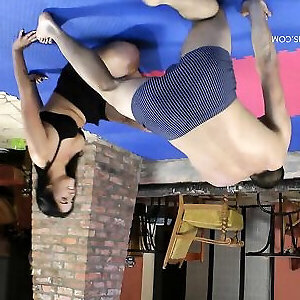 Boy Pent Up and locked in Pussy-smothering in mingled wrestling.