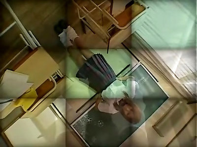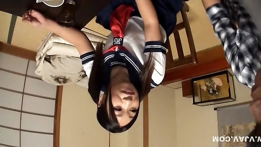 Chinese coed girlie in uniform Momo Aizawa strokes off and deep throats 2 sausages