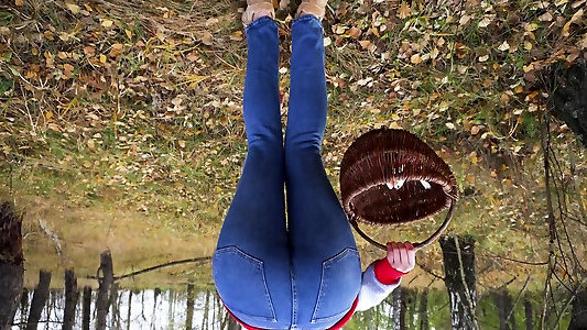 Girl In Blue Jeans Picks Mushrooms Outdoor And Bends Over Flashing Her Big Ass 4k