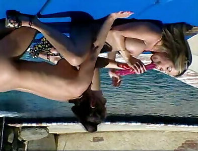 Massive tits hussy sucks on mutant cock near the pool otdoor