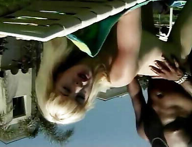 Blonde black chick&039;s tight cunt is split open by a huge tamil aunties sexflimes cock in backyard