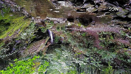 Youthfull lady ambles around bare in a forest and jacks by a trail