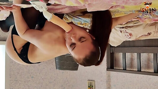Wife in sexy red lingerie with stockings and suspenders sanilonxxxx video hd vibrator