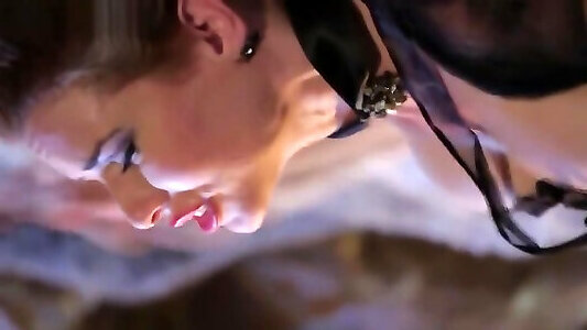 Whores with massive tits and cleavage wearing latex bind and gag a guy in hot fetish sex scene