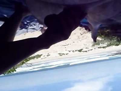 He Pulls Out Her Little Tits As She Gives Him A Handjob And Pulls On His Balls