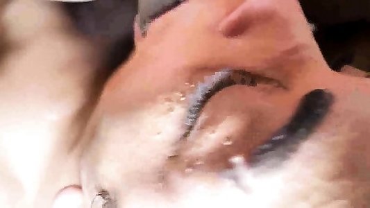 Perverted senior guy squirts big nutsack, providing cool Cuban roomie a gigantic surprise facial cumshot with jizm in her eyes.