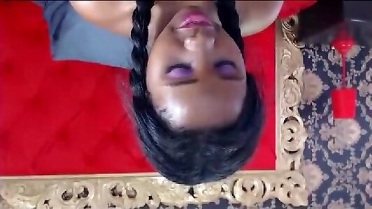 Lashing her pearl with wide open legs