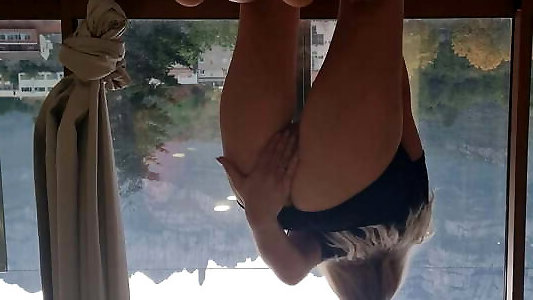 Doggy-style masturbation near window
