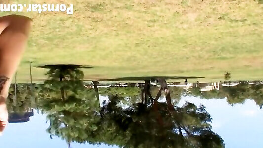 Killer sweetheart Melissa Jacobs flashes her killer figure posing on a web cam near the outdoors pool
