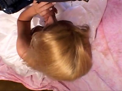Puny platinum-blonde put gigantic faux-cock in her rump