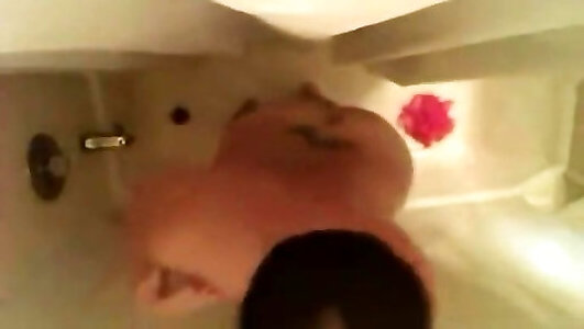 Ponytailed Gloria Washing Her Hairless Cootchie In Tub