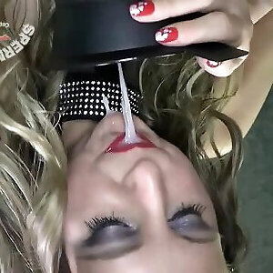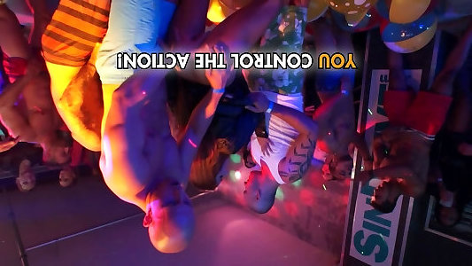 Trashy soiree damsels inhaling jizz-shotguns in club
