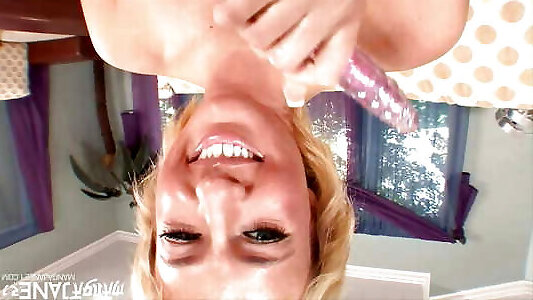 Buxom blondie wife gets a xxl stiffy as a b-day present