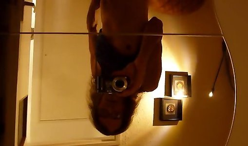 Stroking while looking at her reflection