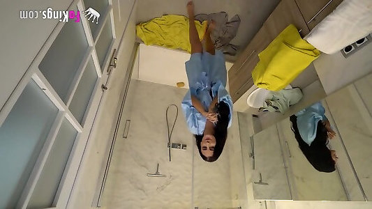Sexy Kylie hot night mom and sun disrobes down and cleans the mansion entirely naked