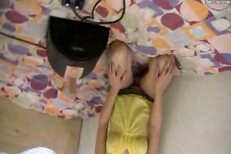 My petite blonde gf attempting on a fuck stick saddle in her guest room