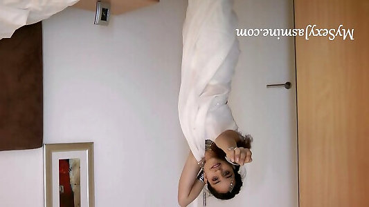 Indian Uber-sexy Teenager Honey Jasmine Striptease and Frigging In White Desi Sari