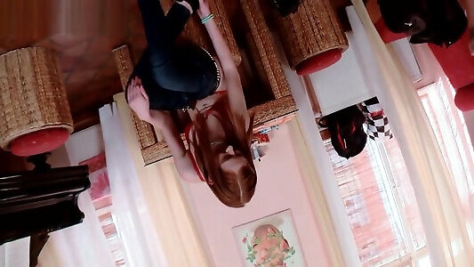 Special Towheaded Unclothes and Opens Her Legs on Couch