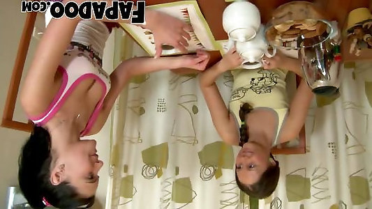 Lesbea Adorable teenie Carrie slurping cunt of first-timer doll