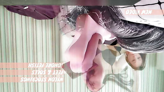 Teenager brunette foot teasing wearing Cuban nylon stockings