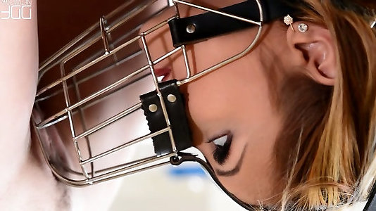 Splendid gal on a leash is prepped to satisfy blonde mistress in latex short sundress