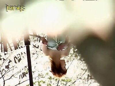 Eccentric brief-haired Asian honey loses her top when sharking man steals it