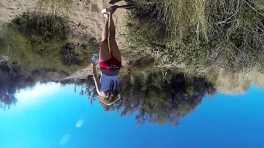 Fellow slurps short-hair woman&039;s feet and gives her deep plowing by pool
