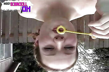 Perfect body light-haired teen with phat bra-stuffers flashes poon
