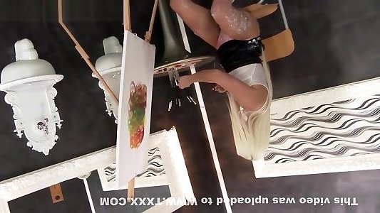 Young Artist use Photograph&039;s cock for her Artwork. She grinds her pretty pussy on his hard cock covering it in sticky slime