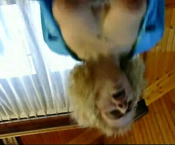 Fitnessbunny waehrend des Trainig mit meinem Schwanz ueberrascht