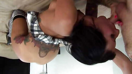 Tattooed Brunette With Big Tits Gets Her Smooth Pussy Stuffed