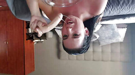 Mischievous Babe Guzzles a Glass of Jizm and Spit after Face Plow