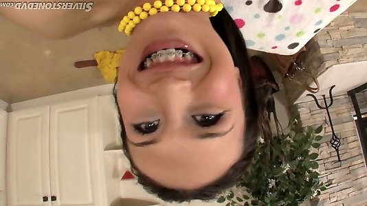 Coddled Jap tramp throating hard pipe in Sixty-nine stance