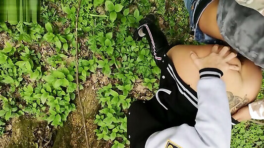Boyfriend bangs me in the woods providing me a big flow on my virgin blood 1st time sex & spray