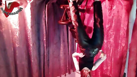 MistressOnline is stretching her leather pants