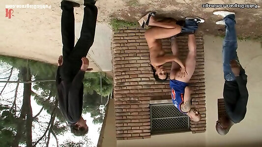 Steve Holmes, Lara Tinelli And Steve Qute - Full-breasted Spic Bound For Tree In Public