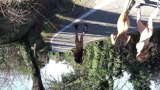 Stunning teenie flashes nude donk under brief microskirt right next to a busy road